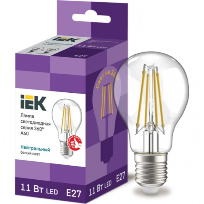 Лампа светодиодная IEK A60 шар прозрачная 11Вт 230В 4000К E27 серия 360° - LLF-A60-11-230-40-E27-CL