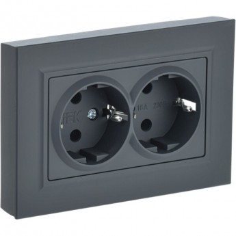 Розетка IEK BRITE РС12-2-БрГ 10А без заземляющего контакта и шторок, графит BR-R20-10-K53-F